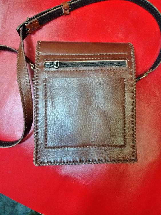 تمام چرم طبیعی گاو زیپ و جیب پشت جیب جلو جادار ابعاد 6.5*17*19