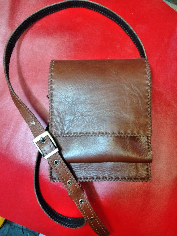 تمام چرم طبیعی گاو زیپ و جیب پشت جیب جلو جادار ابعاد 6.5*17*19