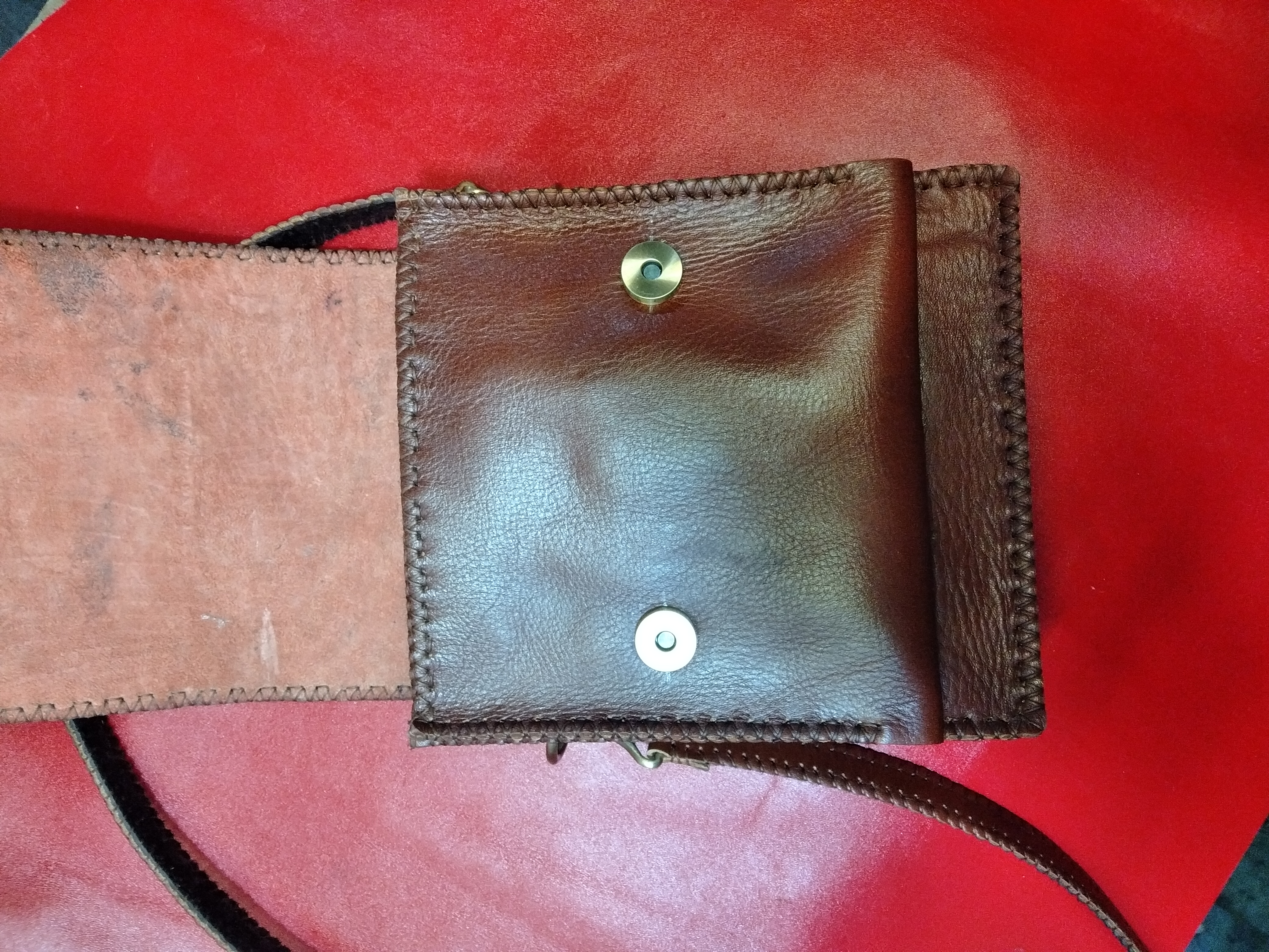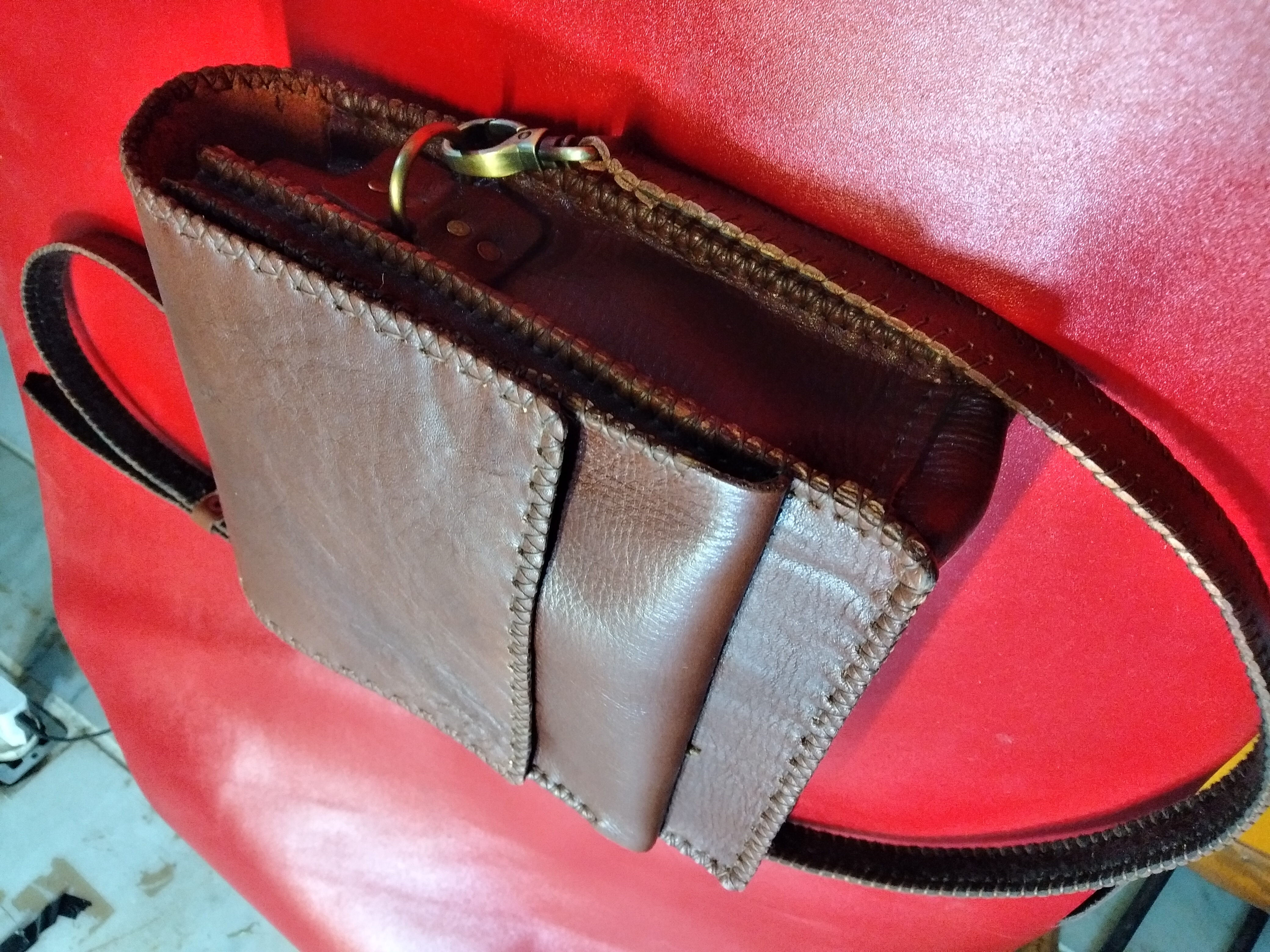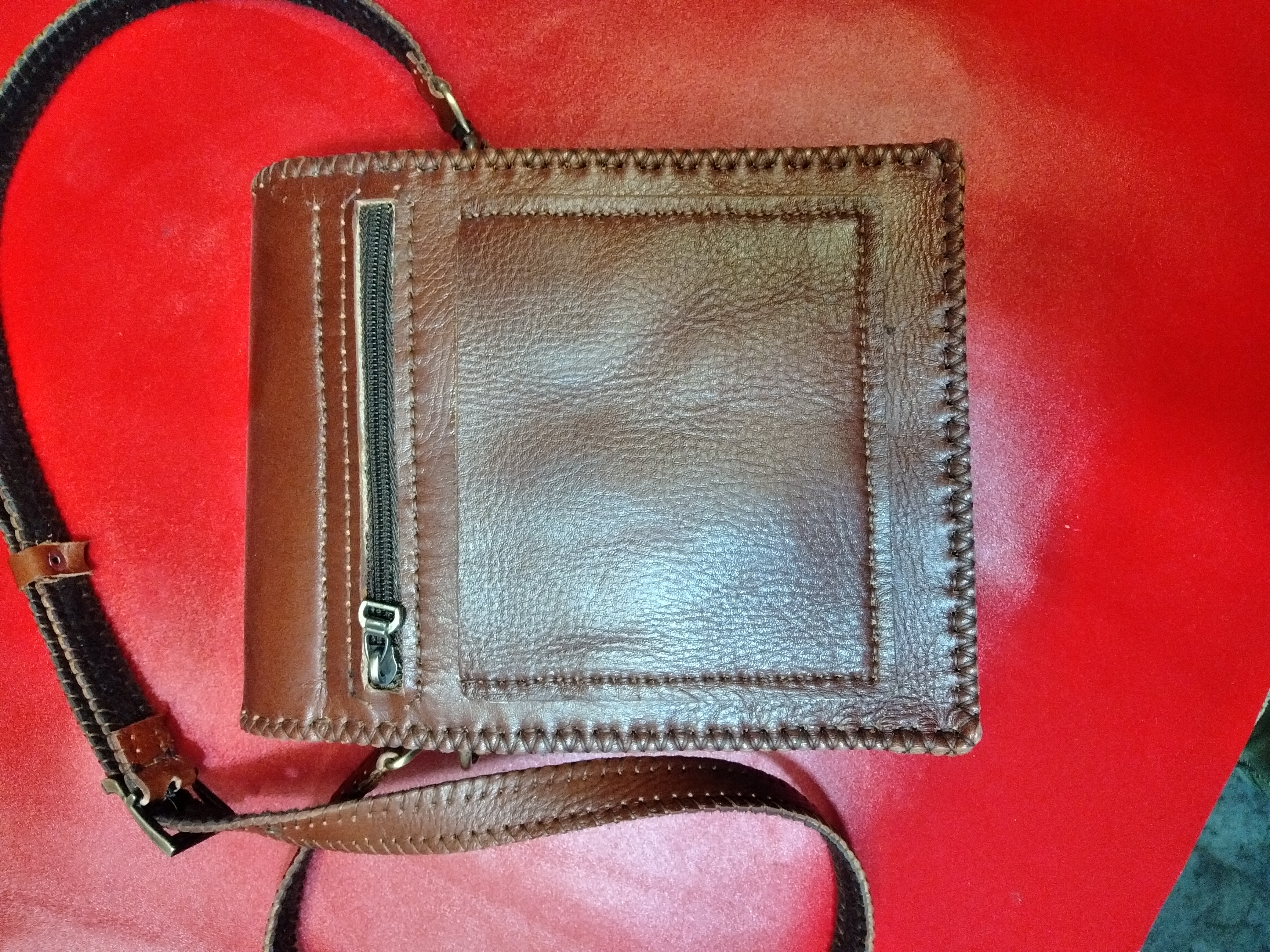 تمام چرم طبیعی گاو زیپ و جیب پشت جیب جلو جادار ابعاد 6.5*17*19